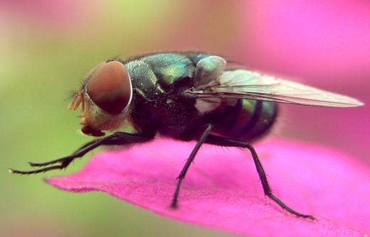 大頭金蠅:體綠色,頰杏黃色,雄復(fù)眼上、下眼面有明顯分界;