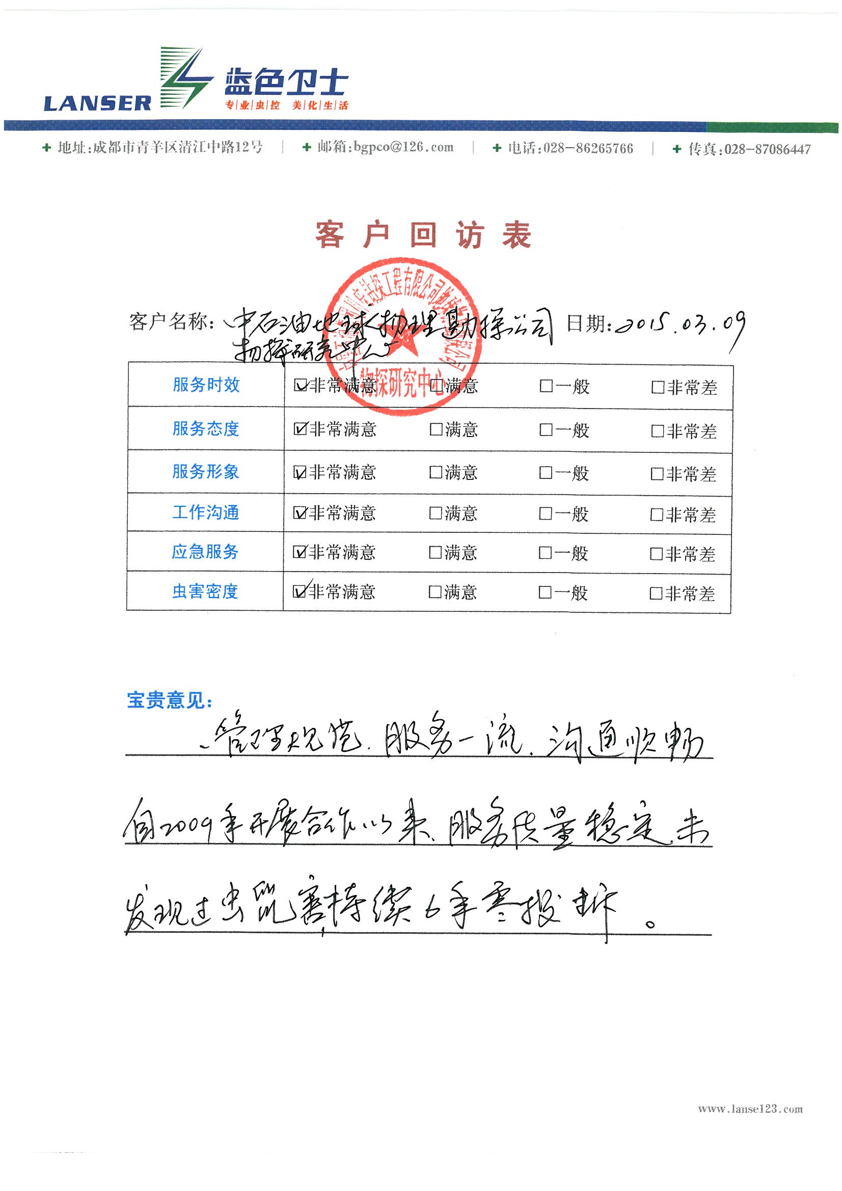 中石油物探公司對(duì)我公司評(píng)價(jià):